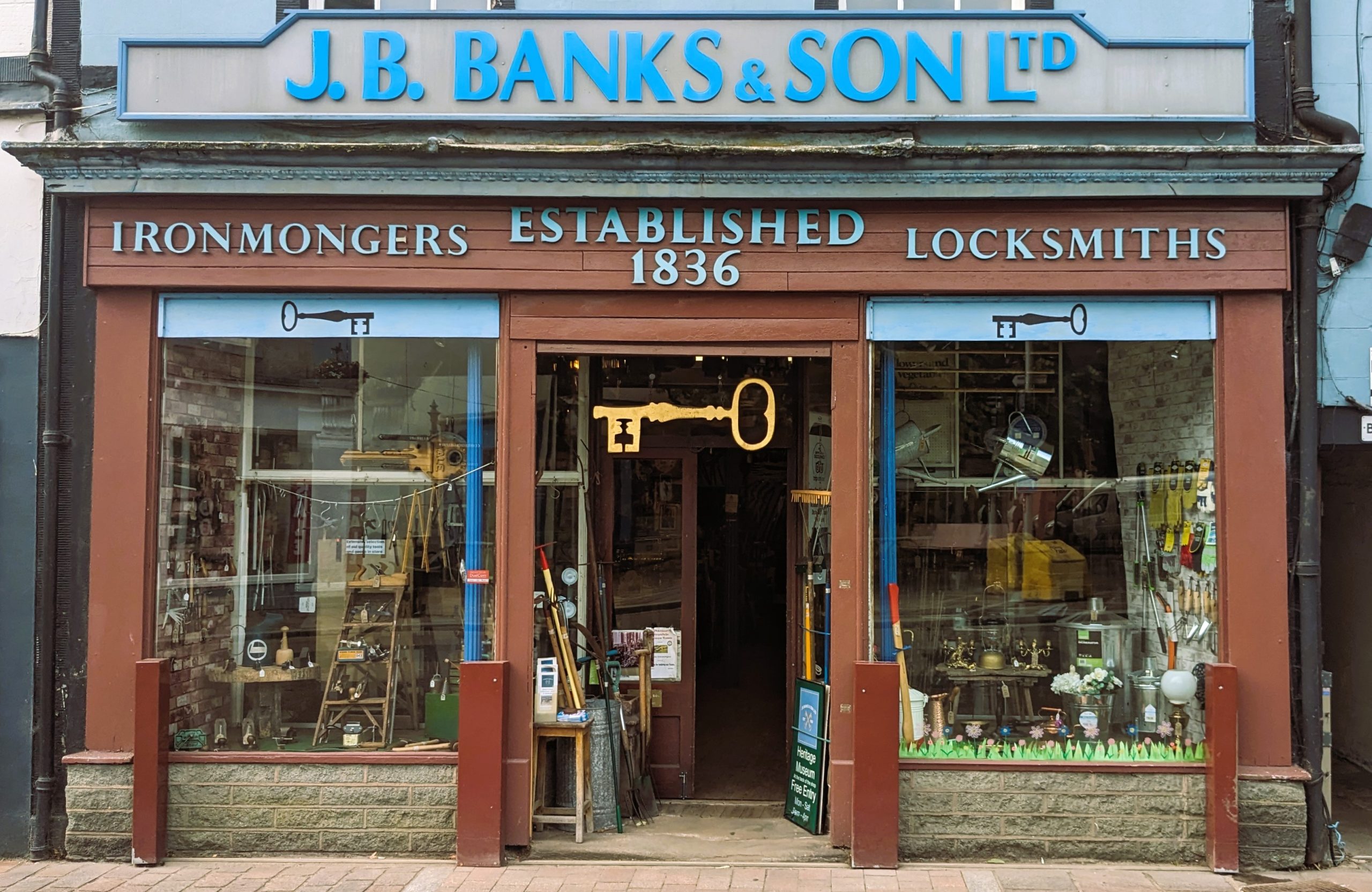 The shop is still a business, specialising in hand tools and hardware. Blue & white enamelware can be found here, together with Garden Trading goods. It still offers quality service it has always given and J.B.Banks celebrated its 175th anniversary in 2011. A visit is a must to browse or buy.