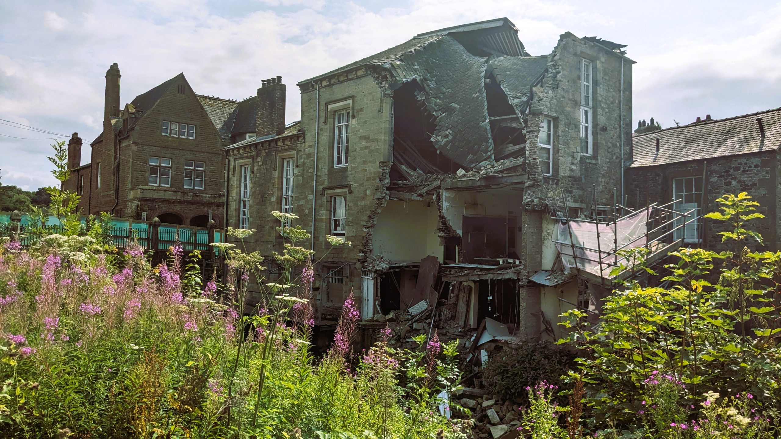 On the eastern end of Main Street directly alongside the River Cocker sits the partially collapsed building that once housed the courthouse in Cockermouth. This Grade 2 listed Victorian building is about 190 years old and most recently was occupied by an antiques business and the Honest Lawyer restaurant. On the 8th October 2023 the collapse occurred involving part of the roof and a major part of the structure. This took place after years of flooding and the erosion caused by the river. A dispute is currently underway between the Council and the owner of the property concerning repairing the historic building.