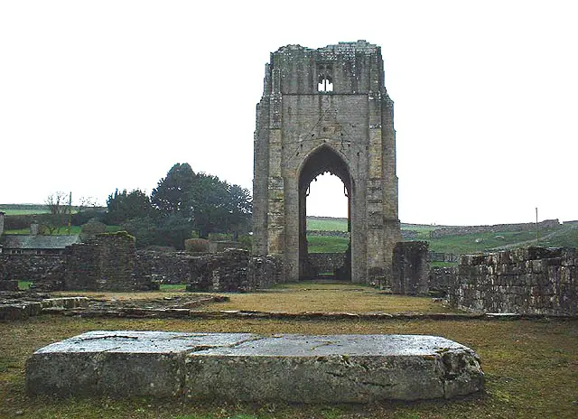It was built in 1199, the last Abbey to be founded in England, and the last to be dissolved by Henry VIII in 1540. It was founded by the Premonstratensian order, also known as the White Canons from the colour of their habits. Most of the buildings are 13th Century in origin, though the striking west tower is early 16th Century. The church, chapter house, dormitories, and cloisters are all much ruined. Stone was taken at the end of the 17th Century to build Shap Market Hall. Much of the carved stonework was also removed and used in the building of Lowther Castle.