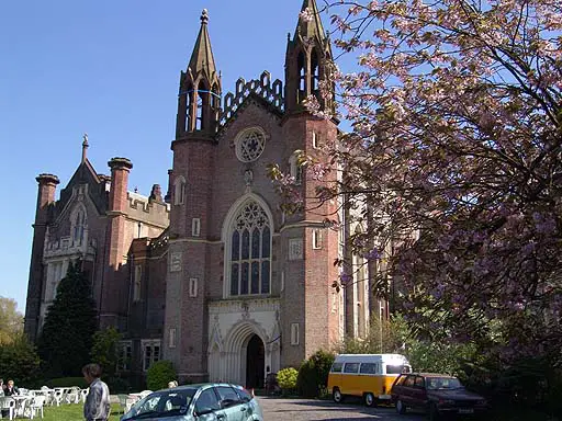 Dominated by two 100 foot octagonal towers, the present house is an excellent example of Victorian Gothic architecture. Special features include decorative ceilings, a valted great hall with fine stained glass and a 177 feet long cloister corridor. The Oak Room contains impressive carved woodwork from the early 17th Century.