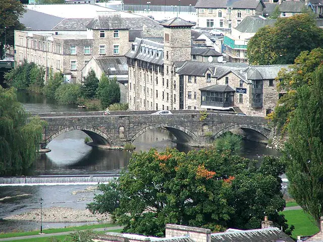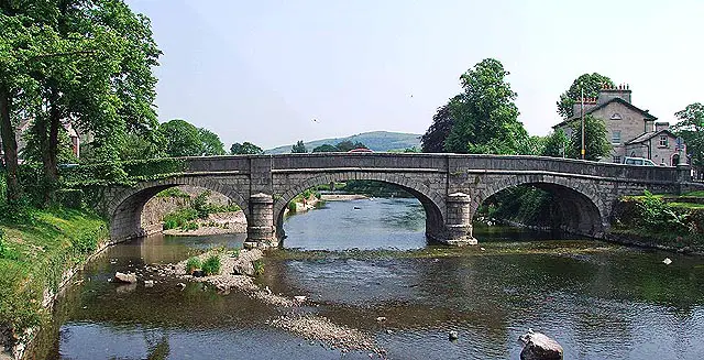 There are five road bridges over the River Kent in Kendal – three stone arch structures, an iron one – Victoria Bridge, which was erected to commemorate the Queen’s Jubilee in 1887, and a modern one.