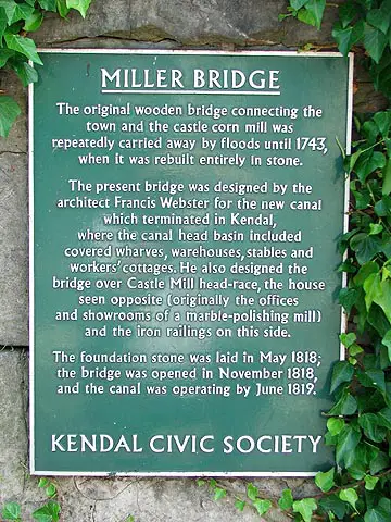 The Miller Bridge, formerly named Mill bridge, was erected in 1818 to the design of John Rennie. It was a replacement of earlier bridges, one of which was destroyed by a flood. It joins New Road and Aynam Road.